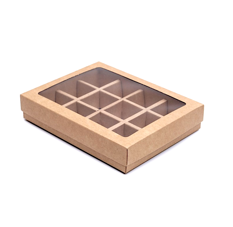 Коробка подойдёт для упаковки конфет, шоколада, безе, зефира, пирожных или другой выпечки высотой до 40 мм.