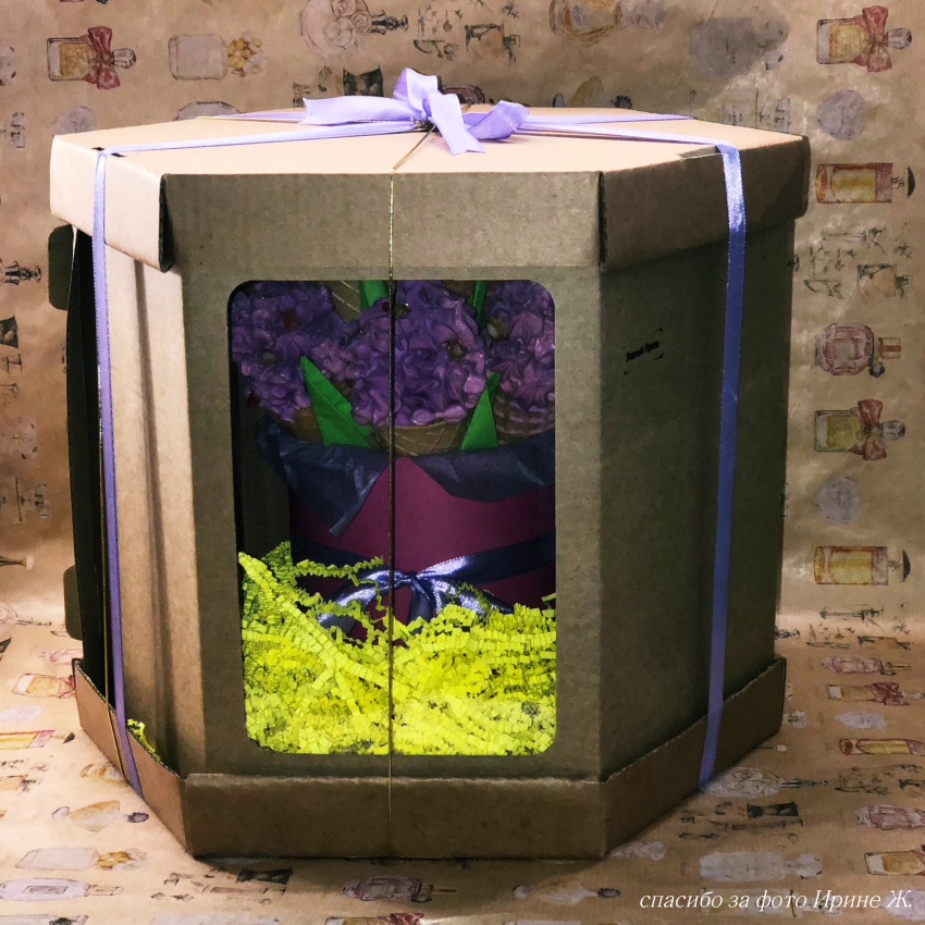 Коробка из микрогофрокартона с окошком используется для хранения или доставки кондитерских изделий, тортов или зефирных букетов. Материал коробки не повлияет на состав кондитерского изделия. Плотная и лёгкая коробка 24*24*24 см Крафт Шесть граней надёжно сохранит содерживое, торт или выпечку.